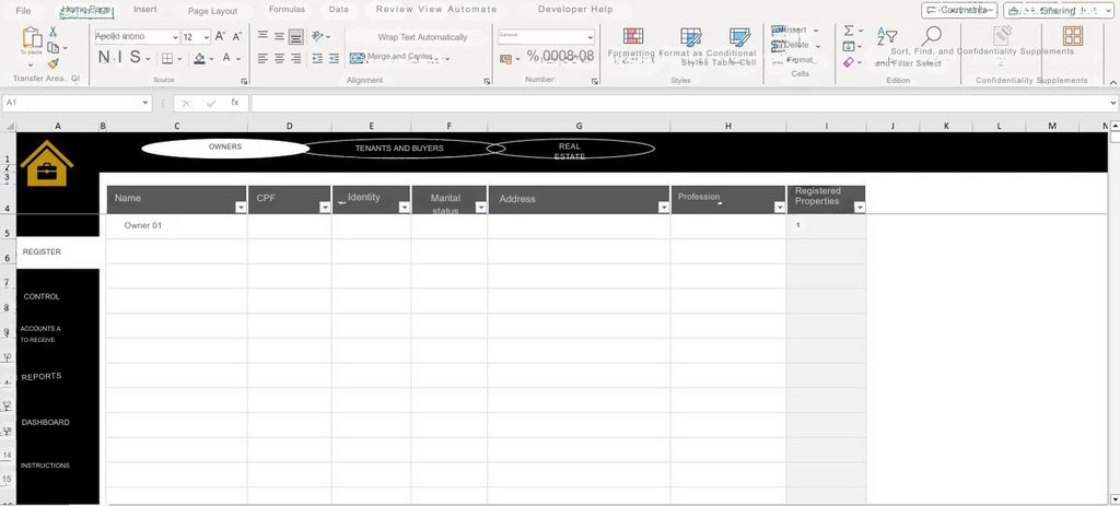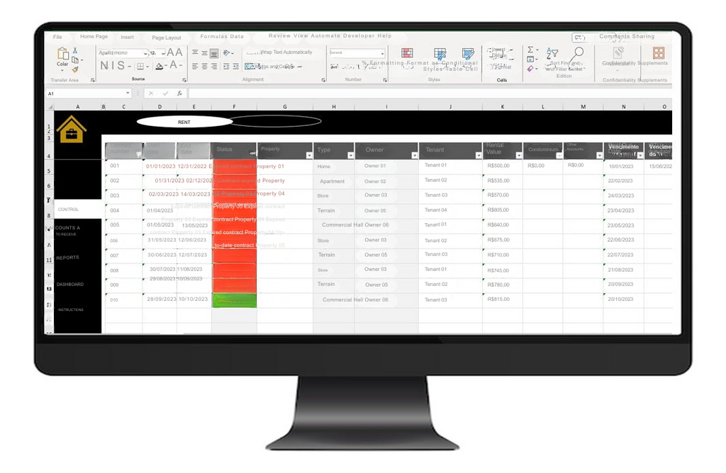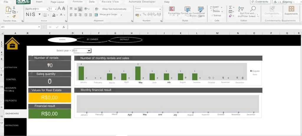 A planilha consolida automaticamente 3 painéis de controle com os principais indicadores e gráficos de controle de aluguel de imóveis da sua imobiliária, um com uma análise geral, outra individual por proprietário e outro de inadimplência.