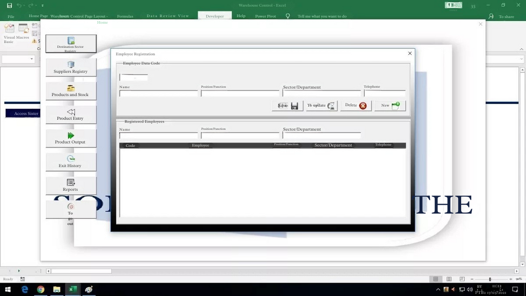 Cadastro de Funcionários - Você cadastra os funcionários e os setores que trabalham, no momento da retirada do estoque você pode controlar quem retirou e para onde o produto foi, e isso fica registrado em histórico.