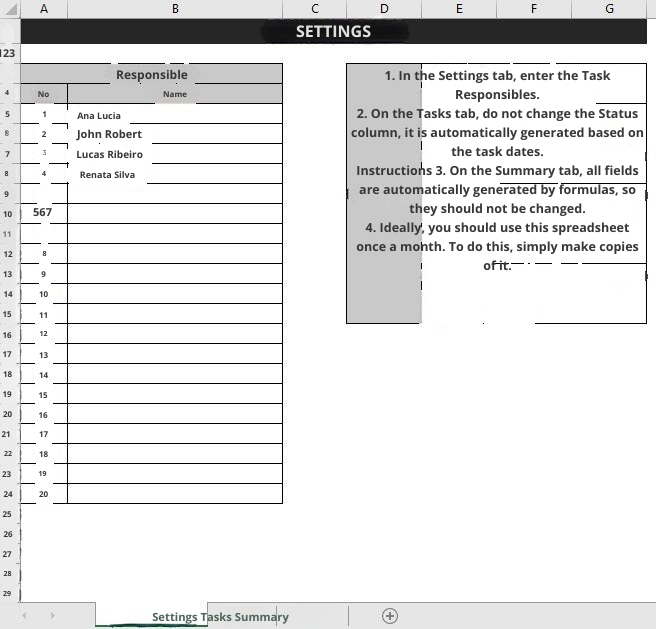 Planilha para Controle de Tarefas - Recursos Disponíveis: