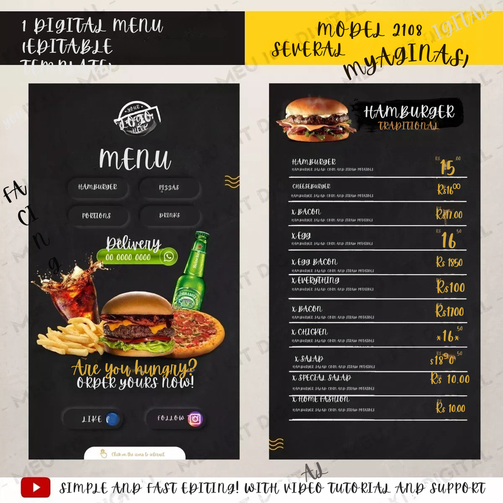 ********Não enviamos o seu Cardápio Pronto. Este produto aqui trata-se de um Template Editável de maneira Online e Gratuita utilizando o site Canva