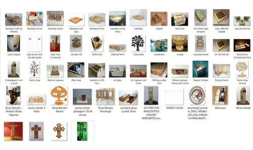 Quebra-cabeças 3d, Árvores de Arquitetura, ornamentos, Caixas de vinho, Caixa de doces Crianças, Letras, Personagens de tv, Animais, Brinquedos, Borboleta, fadas Caixas, Dinossauros, Casas de bonecas, móveis, Bandejas, mandalas, Projetos de luminárias, Acessórios de decoração, Natal, Halloween, Barra de chocolate e novos designs exclusivos Premium.