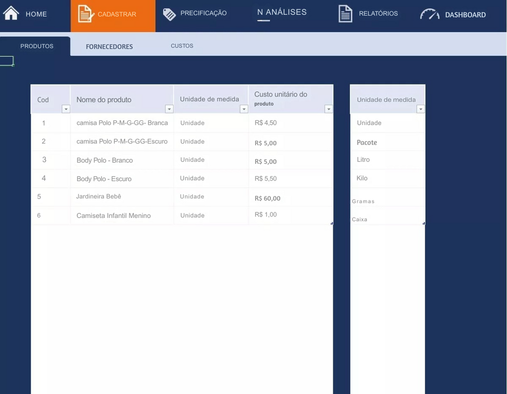 * Button to view the spreadsheet on the screen, giving it a system look;
