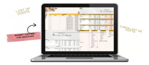 - Excel or Google Sheets spreadsheet with specific wedding categories (decoration, catering, dress, music, etc.)