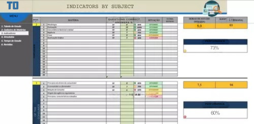 The Study Plan is designed for anyone studying for a civil service exam, the Brazilian Bar Association (OAB), or even college and university entrance exams. It offers greater control over the topics studied and reviewed, as well as monitoring student performance by subject and topic. The Plan also provides suggestions for how long students should study per week based on the chosen weighting for each subject, in addition to having a timer and a review reminder, ensuring students are fully prepared. Performance graphs are also included for the practice exams that will be taken throughout the preparation for the coveted public office.